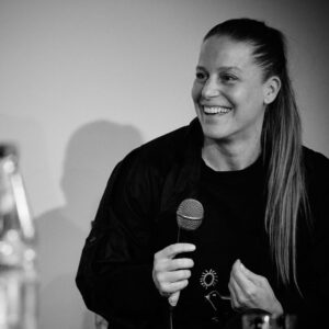Anna Wendt (Produzentin) at BFFS Stammtisch Berlin on 07.04.2025 in Berlin (Grünen Salon der Volksbühne), GERMANY, ©Photo: Dieter Duevelmeyer